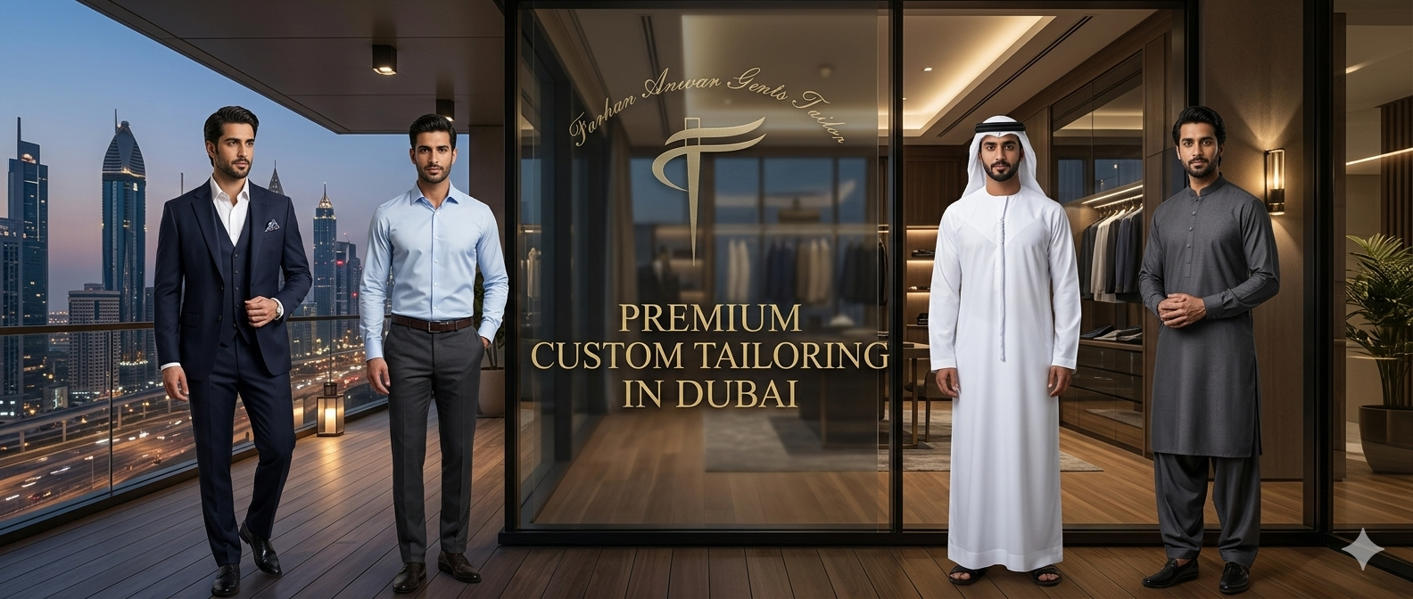 At Farhan Anwar Gents Tailoring, we believe that true elegance lies in the details. Every garment is a masterpiece of construction, combining time-honored Emirati heritage with the sharp, modern lines of Italian tailoring. From the first measurement to the final stitch, we ensure a silhouette that is uniquely yours, crafted with the world's finest fabrics for the discerning gentleman.